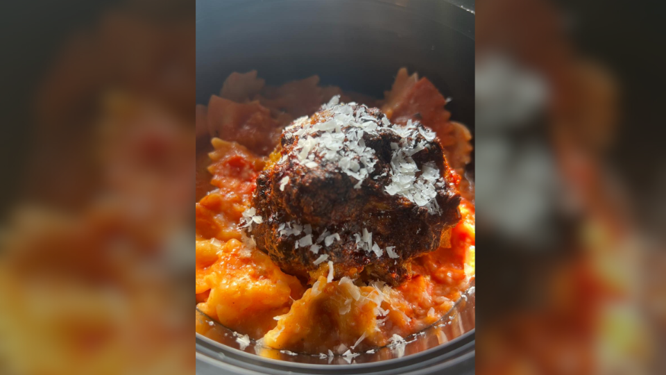 6 ounce Italian, meatball with bowtie, marinara, and parmesan