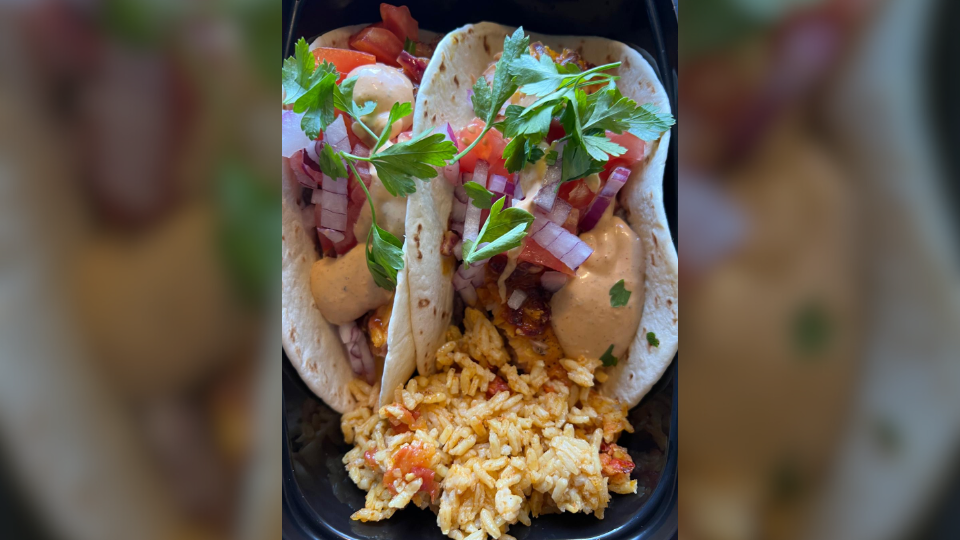 Barbecue chicken tacos Mexican rice